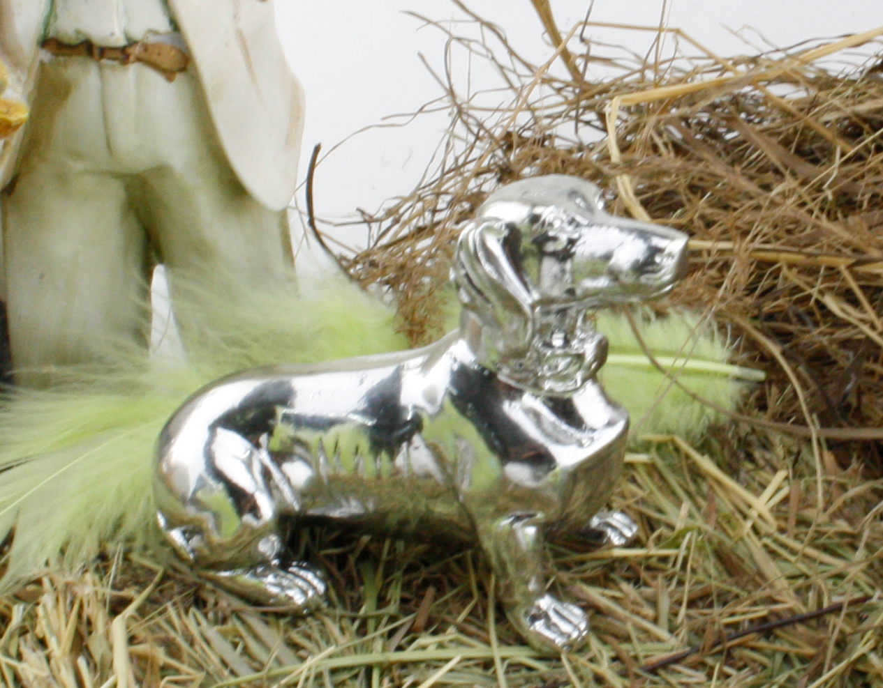 Hier vereint ein kleiner sitzender Silberdackel in einem bezaubernden Porzellan-Ei - wenn das mal keine gelungene Osterüberraschung ist für einen Dackelfreund - hat Stil!
