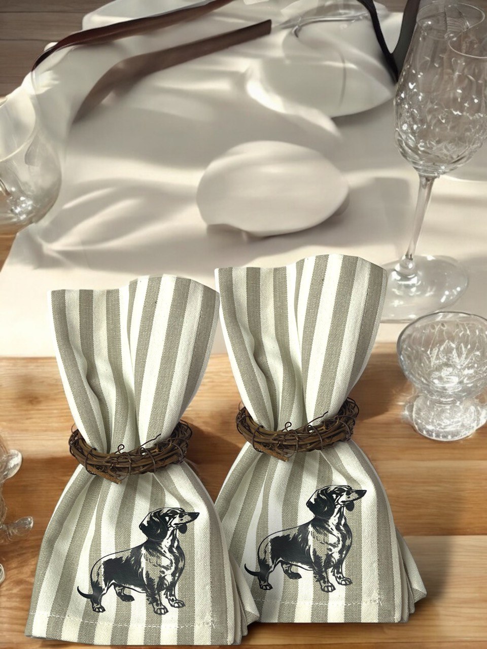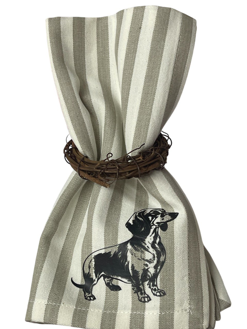 Gestreifte Stoffserviette mit Kurzhaardackel schwarz