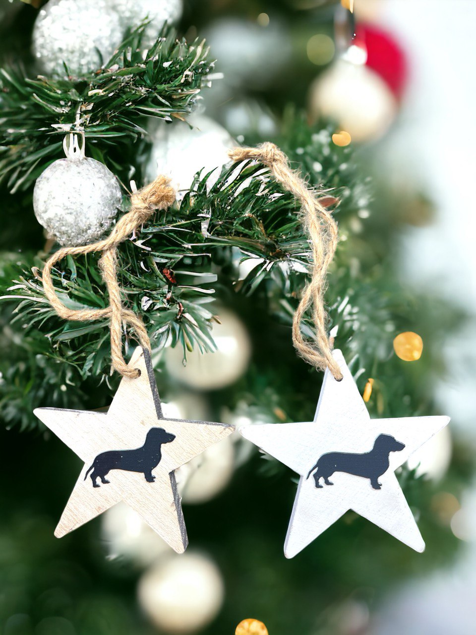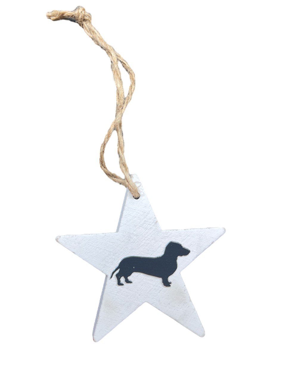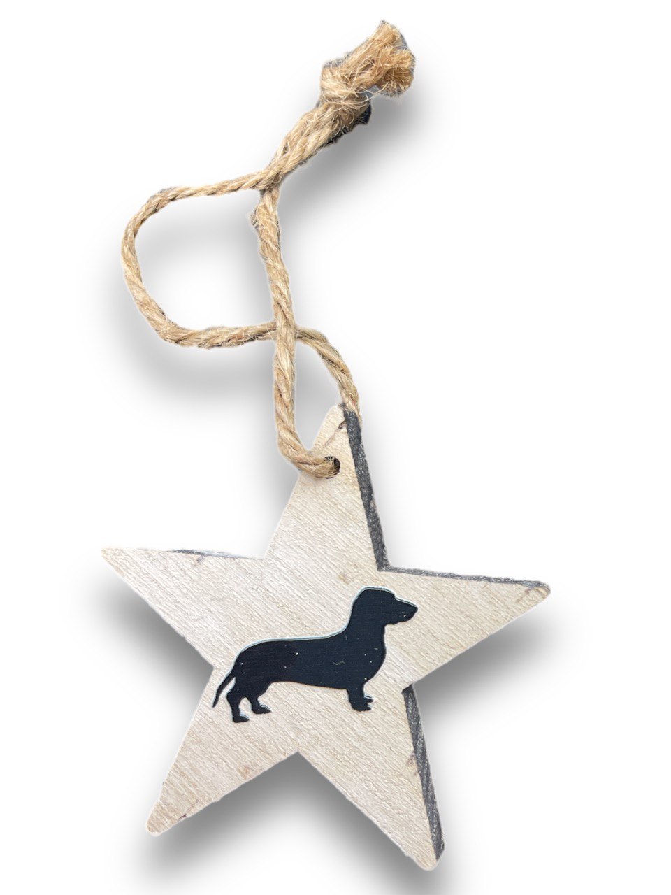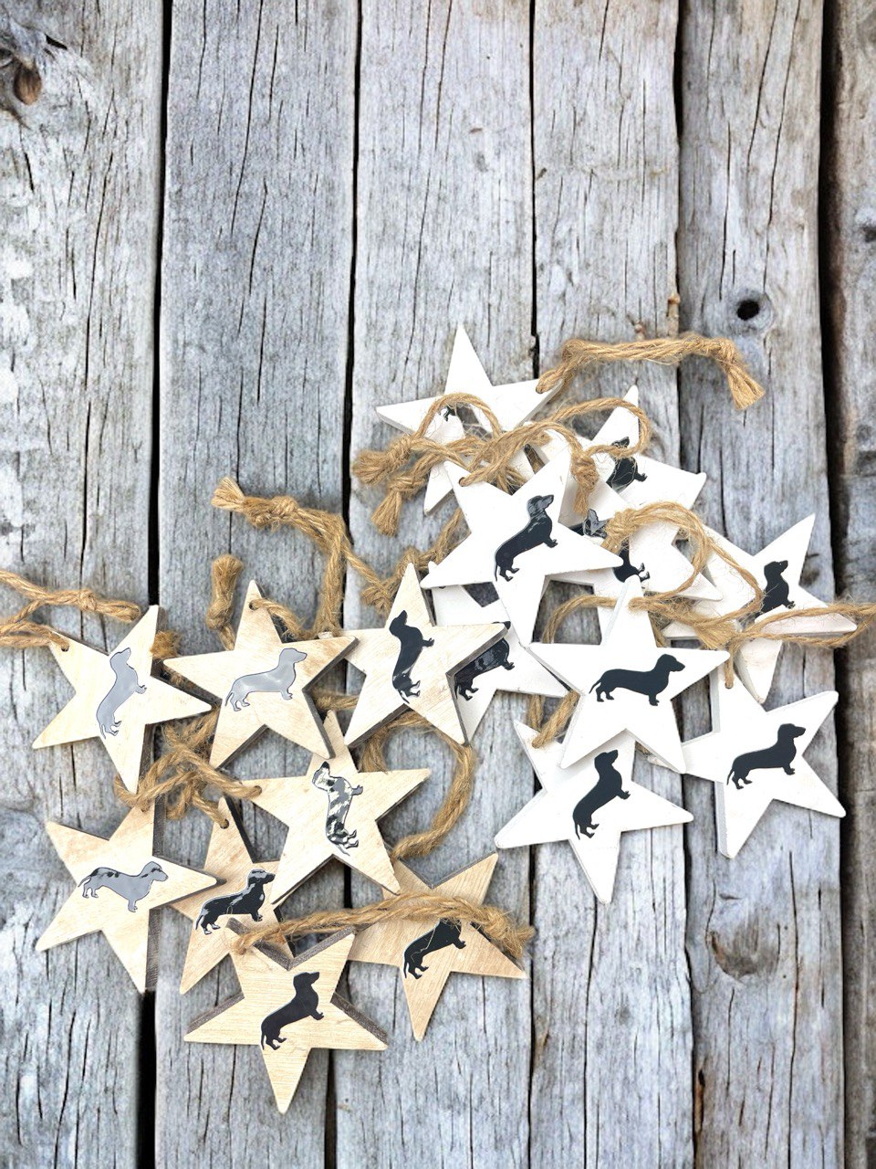 Ein echter Holzstern mit einem Dackelmotiv - entweder in Holz natur oder in weiß- jedersTeil ein Unikat, so wie unsere Dackele!