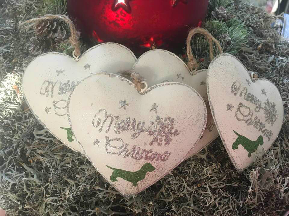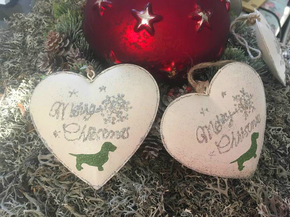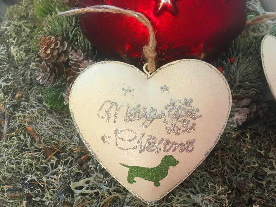 Metalllherz mit Weihnachtsdackel