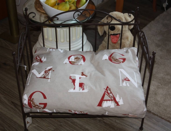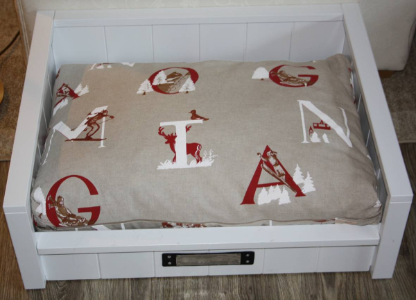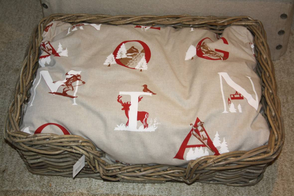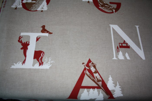 Ein schöner Leinenstoff in beige mit aufgedruckten Buchstaben, die mit winterlichen Motiven versehen sind. Ein schöner Kissenbezug für die kalte Jahreszeit. Ihr Liebling wird sich darin wohlfühlen!
